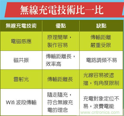 除了磁共振之外,也有科學(xué)家嘗試藉由激光光的光能來(lái)充電,甚至是將電能透過(guò)和家用的Wifi網(wǎng)絡(luò)相近的電波頻段來(lái)傳送。希望這些技術(shù)的突破,能讓我們未來(lái)在充電時(shí)更加方便!