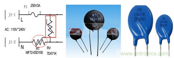 圖4中的RT為NTC,電阻值隨溫度升高而降低,抑制開機(jī)時(shí)產(chǎn)生的浪涌電壓形成的浪涌電流。