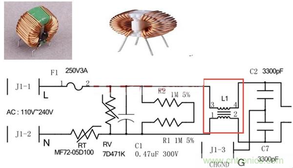 共模電感上,有兩個(gè)共模電感線圈。這兩個(gè)線圈繞在同一鐵芯上,匝數(shù)和相位都相同(繞制方向向反)。共模電感器要不易飽和,如此就需要選擇低B-H(磁芯損耗與飽和磁通密度)溫度特性的材料,因需要較高的電感量,磁芯的μi值也就要高,同時(shí)還必須有較低的磁芯損耗和較高的BS(飽和磁通密度)值,符合上述要求之磁芯材質(zhì),目前以鐵氧體材質(zhì)最為合適,磁芯大小在設(shè)計(jì)時(shí)并沒有一定的規(guī)定,原則上只要符合所需要的電感量,且在允許的低頻損耗范圍內(nèi),所設(shè)計(jì)的產(chǎn)品體積最小化。