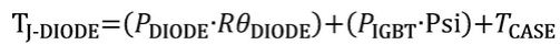 下文將闡釋怎樣量測兩個組件的功率耗散,使用IGBT及二極管的θ值計算平均結溫及峰值結溫。
