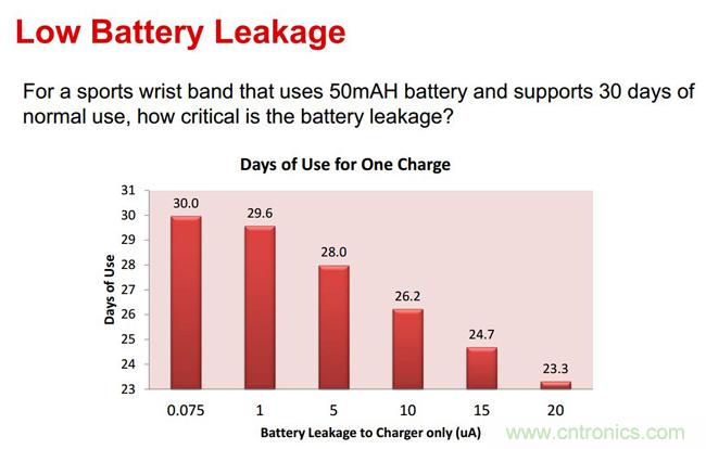 演講中,文博士還提到,可穿戴設(shè)備對于電池模塊的尺寸要求很小,對于電池精度的要求卻是日益提高,如何實(shí)現(xiàn)較小的充電終止電流,也是目前急需攻克的難題之一。“基于較小尺寸和充電終止電流的需求,TI推出了為可穿戴設(shè)備等低功耗應(yīng)用量身定制的鋰離子電池充電器:Bq25100。”文博士為我們介紹道,Bq25100采用了0.9×1.6毫米的WCSP封裝,可支持尺寸僅為前代一半的充電器解決方案;Bq25100可以對低至10mA或高達(dá)250mA的快速充電電流進(jìn)行準(zhǔn)確控制,同時還可實(shí)現(xiàn)低至1mA的充電終止,從而支持微型鋰離子紐扣電池。此外,Bq25100還支持不足75nA的漏電流,可解決因漏電流帶來的電池?fù)p耗問題,延長電池使用時間。