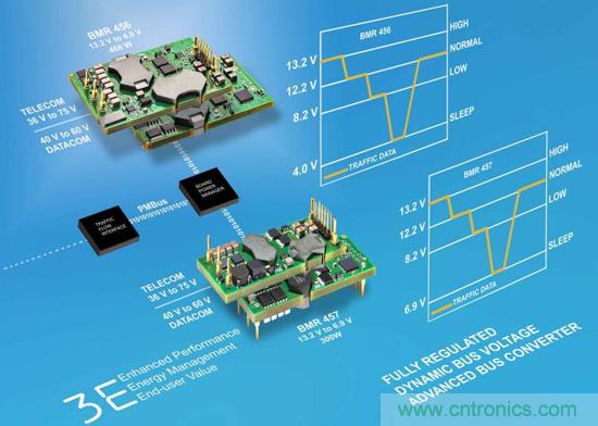 除了數字POL標準外,AMP聯盟還定義了兩項先進總線dc-dc轉換器標準:‘ABC-ebAMPTM’標準涉及尺寸為58.42 x 22.66 mm,功率范圍為264 至300 W的先進總線模塊;‘ABC-qbAMPTM’標準針對尺寸為58.42 x 36.83 mm,功率范圍為420至468 W的四分之一模塊電源。這些標準詳細說明了機械占位面積、特性和配置文件。