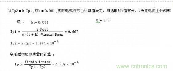 K值就是上面說的電流連續(xù)比上面計算書定義的Ip2是電流上升前沿Ip1是電流上升后沿。所以當(dāng)K=0的時候變壓器是工作在臨界模式以下的為防止計算出錯一般習(xí)慣取0.001.
