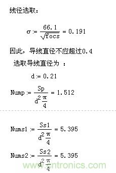 對于一定的電流,需要的導(dǎo)線截面積是一定的,在實際選取線徑的時候,要結(jié)合實際所選的骨架幾何尺寸,做合適的組合,盡量不要散繞,對于某一層繞組,單根線太散的話,可以選取兩根或者幾根細(xì)線進行并饒,只要繞組的總截面積在計算值左右就好。