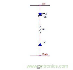 由此式即可計算出R2的大小,亦可得出R2的功率要求,一般要保證R2的功率要大于此功率(E*f)的1.5-2.5倍。若為TVS則,TVS的功率也要和電阻的功率要求一樣,要大于1.5-2.5*E*f。