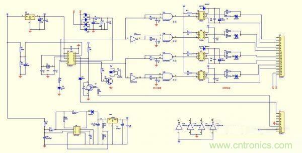 SPWM的核心部分采用了TDS2285單片機芯片。U3、U4組成時序和死區電路,末級輸出用了4個250光藕,H橋的二個上管用了自舉式供電方式,這樣做的目的是簡化電路,可以不用隔離電源。