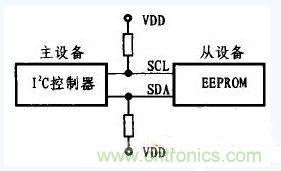 SDA和SCL為雙向的,通過外部+3.3 V上拉電阻連接至正向電壓。當總線處于空閑狀態時,SDA和SCL都應是高電平,I2C通常的配置模式如圖1所示。