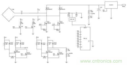 所以另外要設計在空載下調制訊號的方法,加入R5、R6做為空載下的訊號調制用,其分別從線圈兩端進行負載調制,由于是交替運作,所以兩個電阻采用不同阻值,以對應在不同的負載狀況下產生差別的調制強度。因此整個調制技術簡單說明為當后端為空載或輕負載時,就由R5、R6擔任于調制期間加重受電線圈阻抗之工作,當后端輸出負載加重,其阻抗小于R5、R6后,其調制作用將會喪失,所以透過暫停整流器運作的方式,以短暫降低受電線圈上的阻抗來產生調制效果。