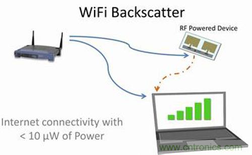 除了利用射頻做為電源,華盛頓大學的工程師們也發現了重復利用現有Wi-Fi信號為無電池設備提供連網功能的方法;這種稱為Wi-Fi Backscatter的技術,號稱是第一個能讓無電池設備與Wi-Fi基礎設施鏈接的方案,奠基于讓低功率設備如溫度傳感器從廣播、電視與無線信號采集能量的較早期研究成果之上。