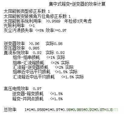 以上公式計算可參考中國質量認證中心技術規范《并網光伏電站性能監測與質量評估技術規范》(申請備案稿)和國標規范《GB50797-2012光伏發電站設計規范》