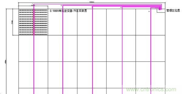 共需0.1MW單元逆變器-升壓箱變200臺。共需5路光伏匯集柜,每回路共有單元40臺。