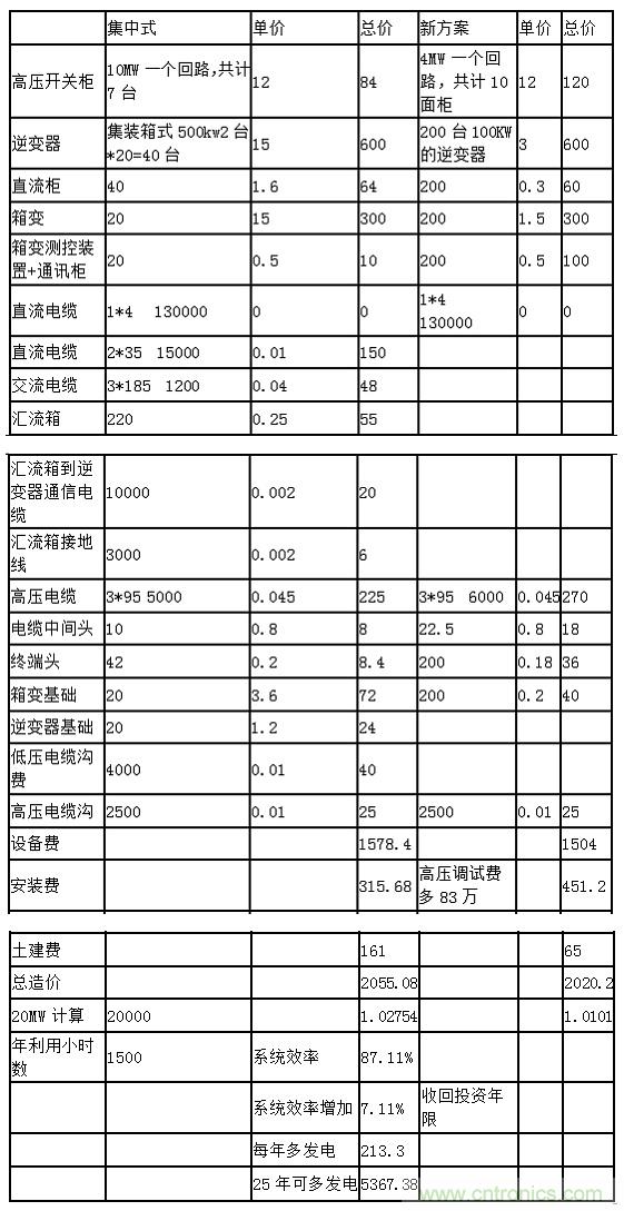 9、整體發電效率提高到87%。比普通集中式逆變器-箱變系統高7%。以20MW安裝容量1500年運行小時考慮,25年可多發電5400多萬度。見下圖3