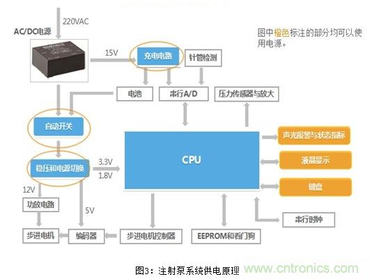 圖3為智能注射泵控制系統供電原理框圖,系統工作情況如下:
