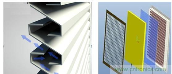 箱體周圍加設隔熱層,采用低導熱率的巖棉作為保溫材料,夾層厚度達50mm,可有效隔絕太陽輻射,并在低溫環境下較好的保溫。箱體進風口S型百葉窗采用專利設計,防護網采用四層結構,有效阻止風沙和雨水侵入。防塵棉則采用特制高通量低阻力過濾棉,可重復使用,更換時只需按下百葉窗暗扣,即可取出防塵棉,整個更換過程時間不到幾分鐘。