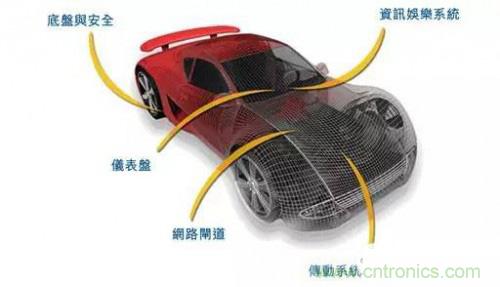 圖1:當代汽車內(nèi)部的部份電子系統(tǒng)。