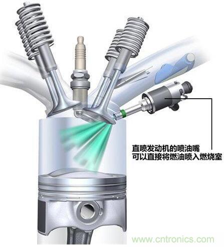 缸內(nèi)直噴,顧名思義就是直接將燃油噴入氣缸內(nèi)與空氣混合的技術(shù)。與傳統(tǒng)歧管噴射的意義不同,缸內(nèi)直噴將噴射壓力更進(jìn)一步提高,使燃油霧化更加細(xì)致,真正實現(xiàn)了精準(zhǔn)地按比例控制噴油并與進(jìn)氣混合,同時消除了缸外噴射的缺點。在發(fā)動機低轉(zhuǎn)速低載荷時,延遲噴射,在活塞進(jìn)行壓縮沖程最后階段時噴射,利用空氣渦流,使燃油聚集在火花塞附近,分層燃燒實現(xiàn)節(jié)油的目的,但當(dāng)發(fā)動機轉(zhuǎn)速上去,載荷上去時,還是要提前噴射,在吸氣沖程就將燃油噴射進(jìn)去,使油氣均勻混合燃燒。