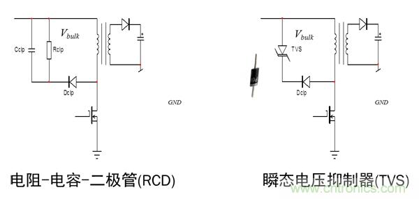 對于RCD電路中,較大的吸收電容C可減少鉗位電壓紋波,但會增加待機功耗,所以C的選取一般以滿載時5%至10%鉗位電壓紋波為宜。如果吸收電阻R較熱,可減小變壓器漏電感,選用Trr一致性好的慢管,可降低鉗位電壓,減少R損耗。
