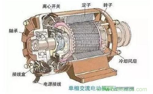 這樣,在電動機中就有了兩個電磁場:一個是接通外部交流電后而產生的定子電磁場;另一個是因切割定子電磁感應線而產生電流后形成的轉子電磁場。根據楞次定律,感應電流的磁場總要反抗引起感應電流的原因(轉子繞組切割定子電磁場的磁感應線),也就是盡力使轉子上的導體不再切割定子磁場的磁感應線,這樣的結果就是:轉子上的導體會“追趕”定子的旋轉電磁場,也就是使轉子跟著定子旋轉電磁場旋轉,最終使電動機開始旋轉。