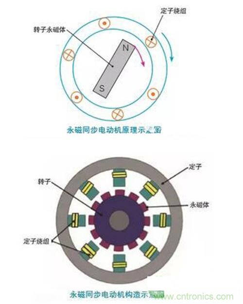 二是干脆在轉子上嵌上永久磁體,直接產生磁場,省去了勵磁電流或感應電流的環節。這種由永久磁體產生轉子磁場的同步電動機,就稱為永磁同步電動機。