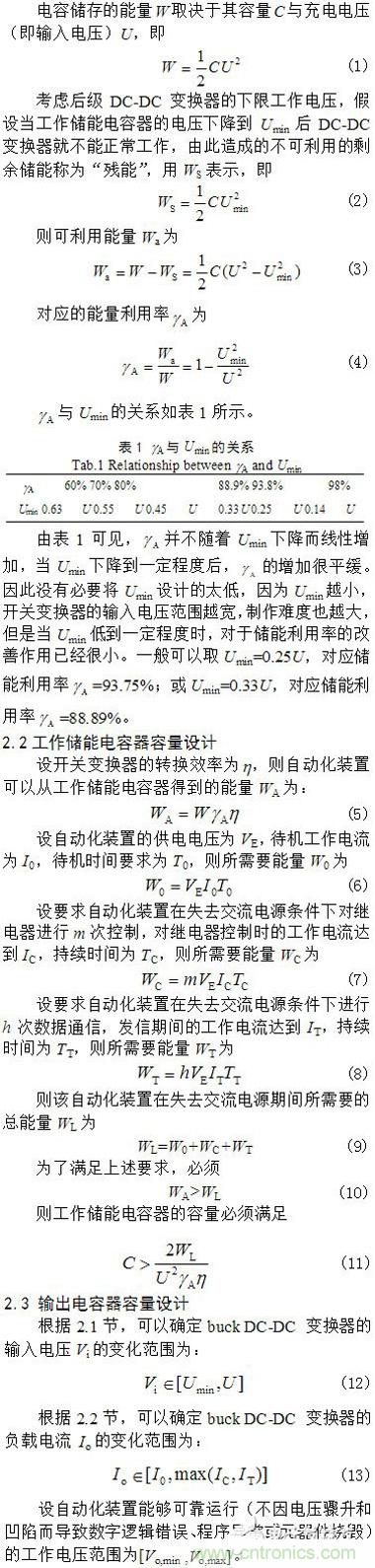 【導讀】為了在失電情況下繼續(xù)維持智能終端設備短暫工作,提出了一種基于電容儲能的自動化終端備用開關電源解決方案。論述了電路組成、下限工作電壓選取和儲能電容器容量設計方法。