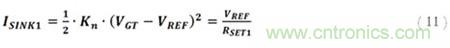 那么柵極驅(qū)動(dòng)對閾值電壓的差是什么呢,VGT?這最終由偏置網(wǎng)絡(luò)第1柱的反饋決定;它本質(zhì)上是維持所需ISINK1電流需要的電壓: