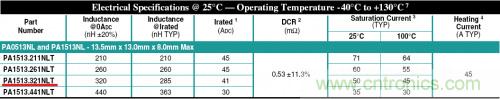 以Pulse的PA1513NL系列的電感為例,采用PA1513NL.321NLT。在其官網上下載到的datasheet如下。基本的參數為:電感值為320nH,直流電阻為0.53±11.3%。