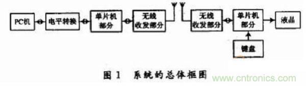此雙工無線通信系統的總體框圖如圖1所示。由于此系統可實現雙工通信,因此它可分為兩個通信過程:PC機(上位機)通過上位機程序界面發送數據給單片機,并送給液晶屏顯示相應的數據;鍵盤輸入數據傳給單片機,接著發送給PC機,并在PC機上位機程序界面上顯示出來。