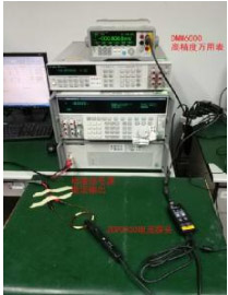 精度測試所使用試儀器為FLUKE5720校準器、六位半萬用表DMM6000。測試步驟,校準器FLUKE5720輸出不同的被測電流值,萬用表讀取電流探頭的響應電壓值。