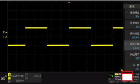方波響應主要是用來簡易測試電流探頭幅頻響應特性的測試方法。電流探頭能夠完整的重現(xiàn)方波波形,不出現(xiàn)畸變,說明探頭的幅頻響應平坦,是良好的。
