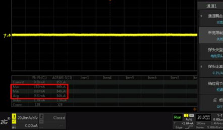 噪聲測試主要是使用示波器ZDS2022來觀察測試,并記錄相應的測試值。