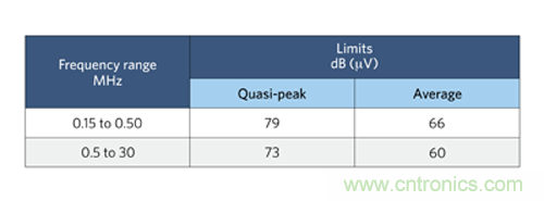 圖 1:CISPR 22 標準 B 類傳導 EMI 規范。