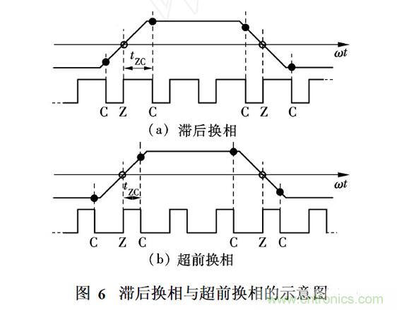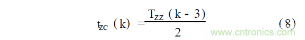 式中, TZZ ( k - 1)為第k - 1次過(guò)零點(diǎn)到第k次過(guò)零點(diǎn)的時(shí)間; tZC ( k)為第k次過(guò)零點(diǎn)到第k次換相點(diǎn)的延遲時(shí)間.