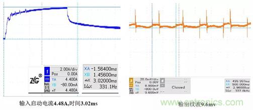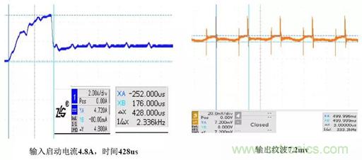 外接輸出電容4700uf測試的輸入輸出波形圖