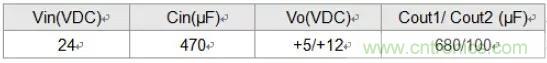 為了進一步穩定輸入電源,在輸入端增加一電容Cin,若為了進一步減小輸出紋波和噪聲,可在輸出端增加一串聯等效阻抗小的電容Cout,但容值不能超過該產品的最大容性負載,否則會造成電源模塊啟動不良。推薦外接電容值,如表1所示。