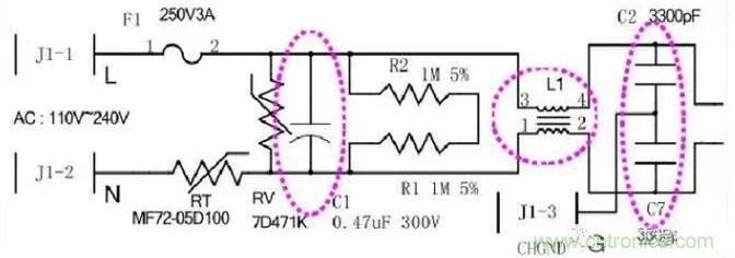 1、交流電源輸入分為3個端子:火線(L)/零線(N)/地線(G)。在火線和地線之間以及在零線和地線之間并接的電容, 這兩個Y電容連接的位置比較關鍵,必須需要符合相關安全標準, 以防引起電子設備漏電或機殼帶電,容易危及人身安全及生命。它們都屬于安全電容,從而要求電容值不能偏大,而耐壓必須較高。