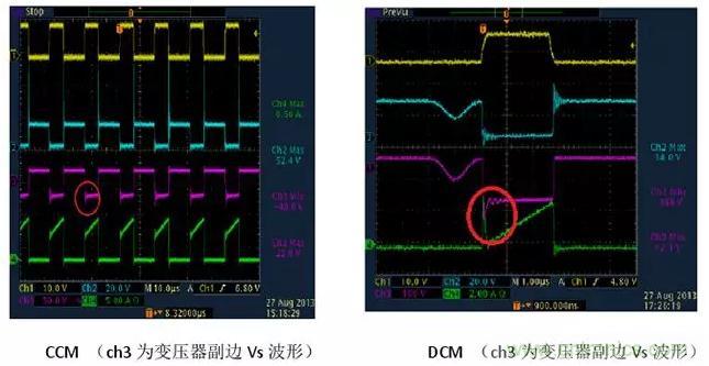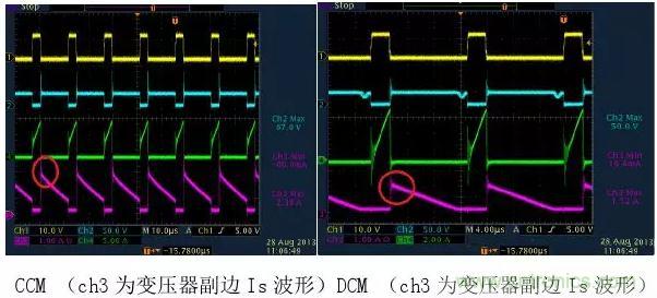 因此我們就可以很容易從波形上看出來反激電源是工作在CCM還是DCM狀態。