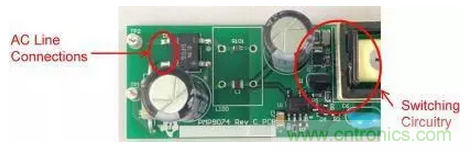 注意,漏極連接與輸入引線之間有一些由輸入電容器提供的屏蔽。該電容器的外殼連接至主接地,可為共模電流提供返回主接地的路徑。如圖2所示,這個微小的電容會導致電源EMI簽名超出規范要求。