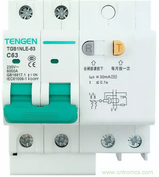 第一我們來看1P+N的漏電保護開關的標注和接線方法: