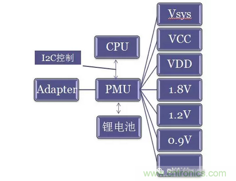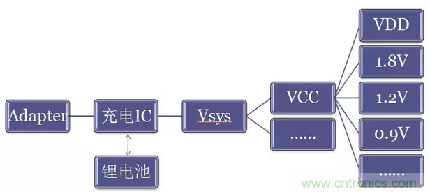 下圖為一般電源管理系統,原始分立電源管理系統,模型一:
