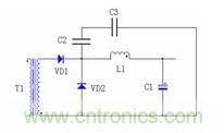 圖中C2 是二極管VD1 和VD2 與散熱器之間的耦合電容,容量一般在幾十PF,C3 是增加的電容,C3 要遠大于C2,DC/DC 整流管、續流管上的電壓峰值經過C2 與C3 的分壓,幅度大大降低,就可以大大減小向外的輻射。