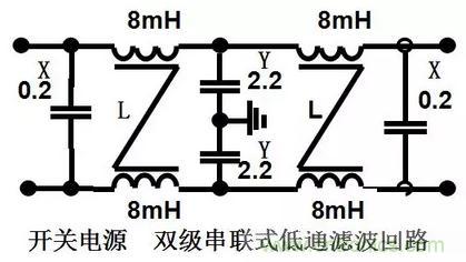 c.而電容容量大(C2>C1),流過C2的是低頻交流成分,對低頻交流干擾濾波效果較好。