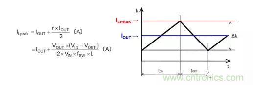 從公式和電流波形可知,ILPEAK值為ΔIL的1/2加IOUT的值。