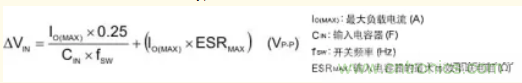 基本上,必須根據這些信息選擇輸入電容器,不過試作評估時也有必要確認摻入紋波的輸入電壓沒有超過耐壓、沒有因紋波電流而產生無法承受的發熱等。