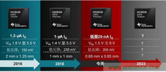 這款于9月18日發布的線性穩壓器LDO,作為業界比較領先的LDO,靜態電流低至25nA,比前一代耗能降低大約40倍。新型穩壓器在壓降的條件下 也能在輕負載時實現超低 IQ 控制。