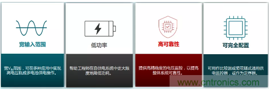 這款于2019年第一季度推出的開關穩壓器,是適用于納米級供電設計的一系列高輸入電壓、高效監控器。一般來說,監控器大部分時間都是不工作的,只有在系統異常時才會獲取復位信號,因此這款產品擁有低IQ的意義就更加重要了。
