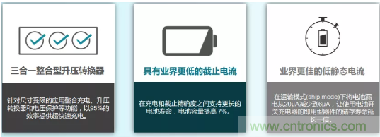 低截止電流有助于醫療和個人電子產品應用,如助聽器、耳塞和無線充電盒。隨著電池容量的增加,以及可設定充電計時器的輔助,使耳塞和充電盒的電池運行時間延長,大幅延長電池壽命,并減少使用時的充電次數。