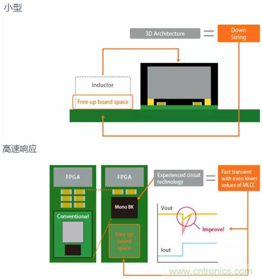 【導(dǎo)讀】除了產(chǎn)品,包括外置元件在內(nèi),村田還設(shè)計了尺寸小、噪聲低的DC-DC轉(zhuǎn)換器模塊MonoBK or Mono Block解決方案。村田的MonoBK解決裝置的空間問題。