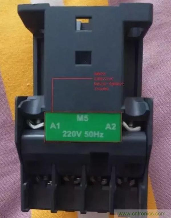 每一件接觸器在線圈接線端子地方都會有這樣的標(biāo)識,還請各位一定要注意,接錯了這個線圈就廢了。。