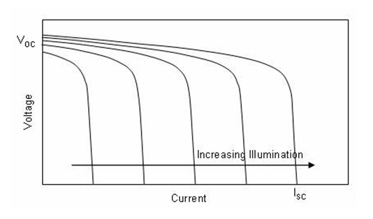 太陽能板輸出是一個電流有限的電壓源。其伏安特性如下圖所示:
