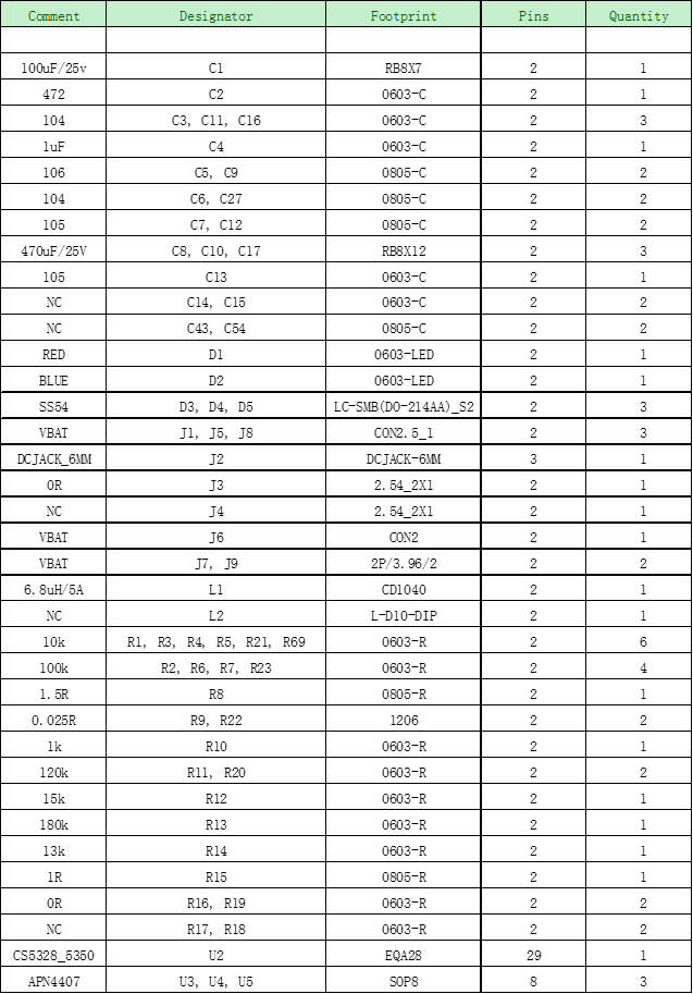 (7). CS5328E,CS5350E DEMO板物料清單